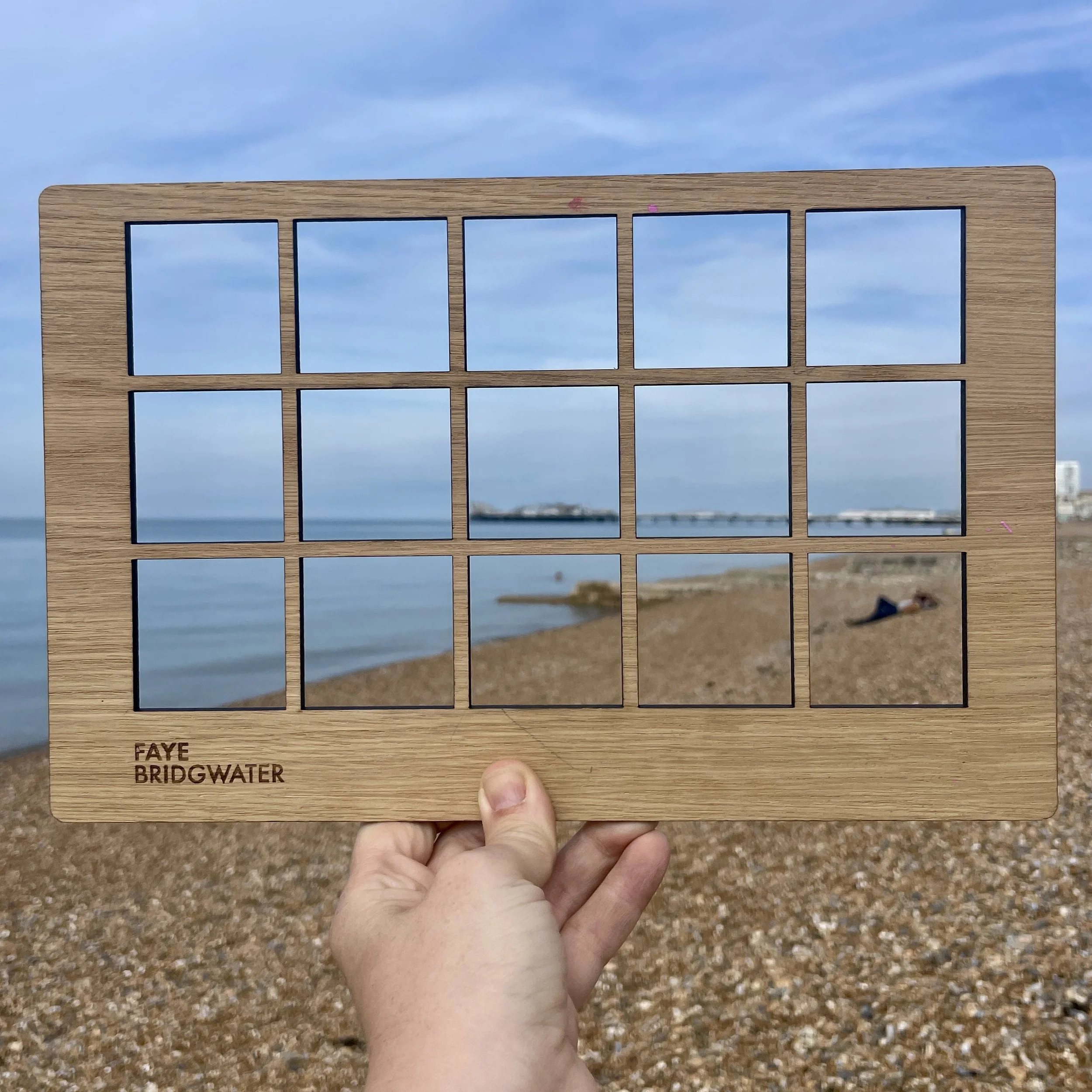 We’ll be using my Sketch Squares as a starting point. It’s a clever artist’s tool that divides a page into 15 squares, giving you small, bite sized spaces to experiment in. This year there are two versions to choose from: the original oak veneered stencil, available in the UK only, and the new bright orange acrylic Sketch Square, which is available for both UK and international orders. They fit perfectly in an A4 sketchbook and are brilliant for sparking ideas, and are available in my shop now.